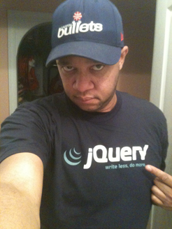 jQuery T-shirt...how cool am I? All my friends know I like t-shirts so no one should be surprised by my new one, considering the man-crush I have on jQuery. Will probably rock this the next warm day that comes around.