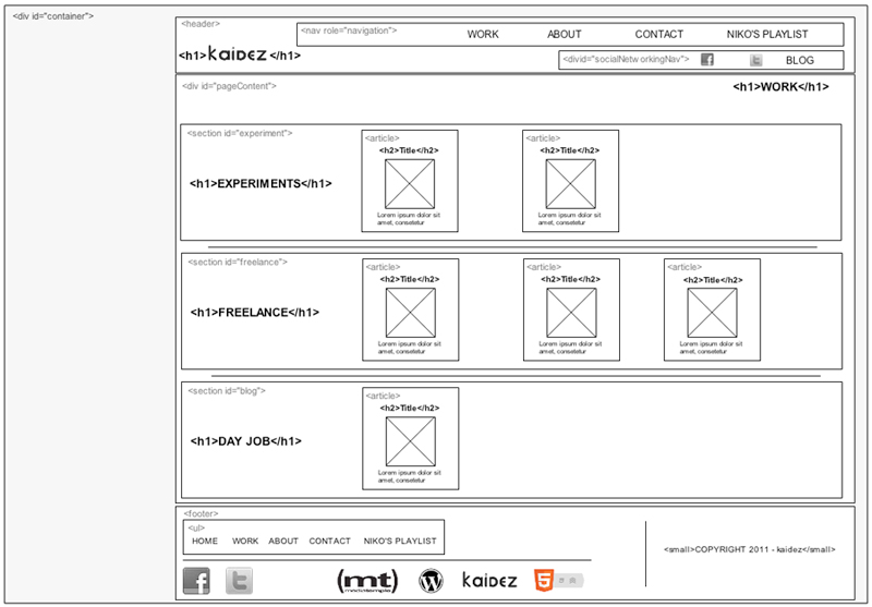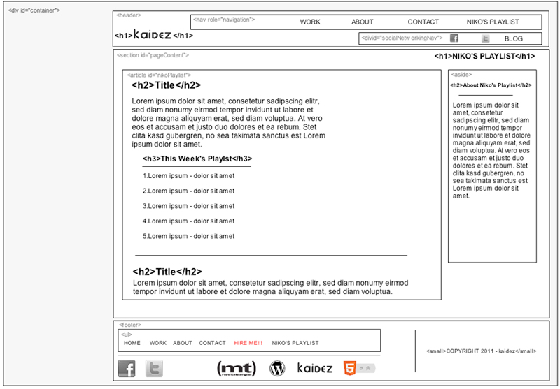 HTML5 Project: WIREFRAME SERIES #2 – WORK & NIKO'S PLAYLIST PAGES